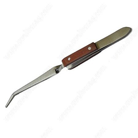 05-016 Пинцет обратный с дерев. накладками загнутый